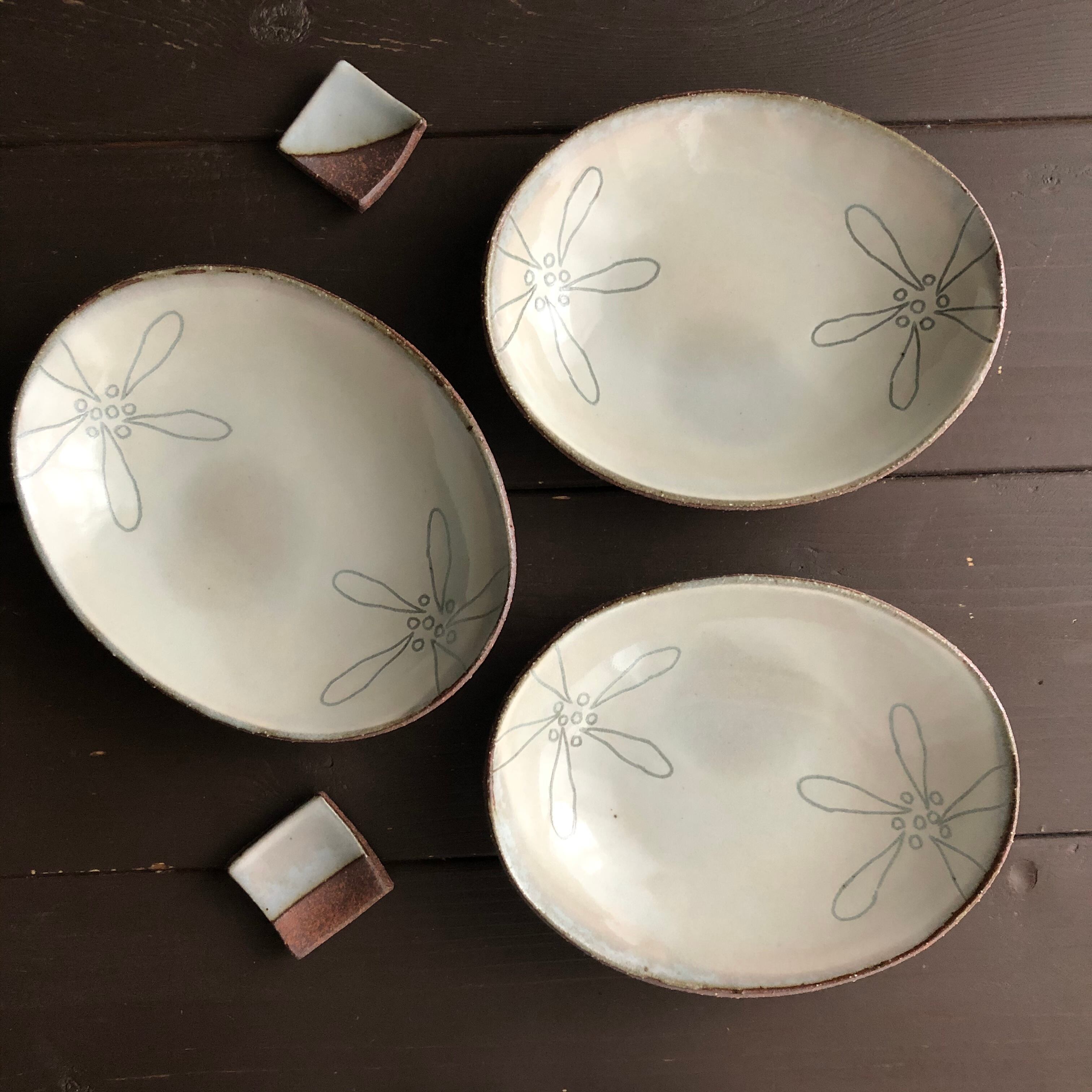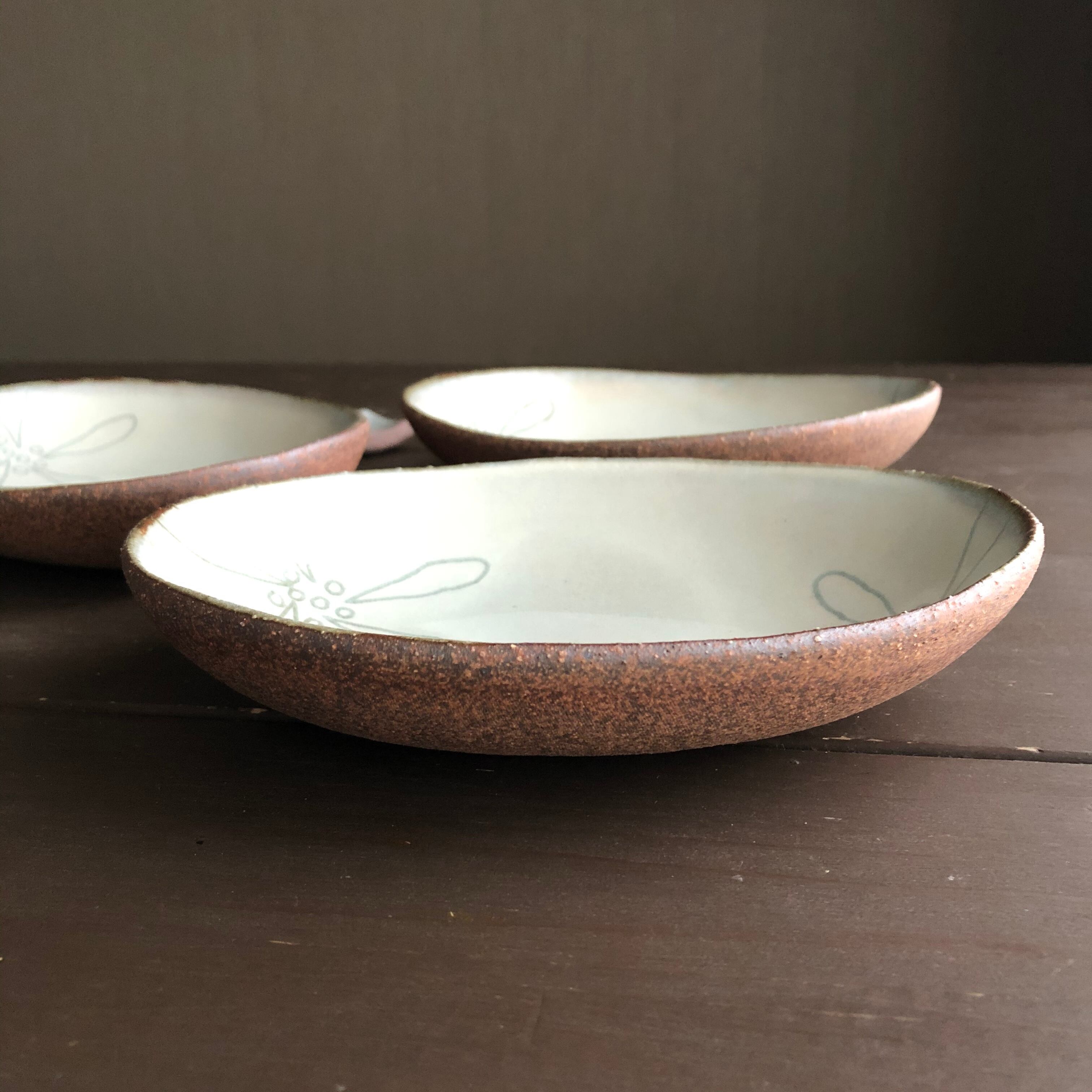 こぶしの花の線は1点1点フリーハンドで位置やバランスを変えて描いています。工房の庭先に毎年咲くこぶしの花が色々な器に咲いていきます。